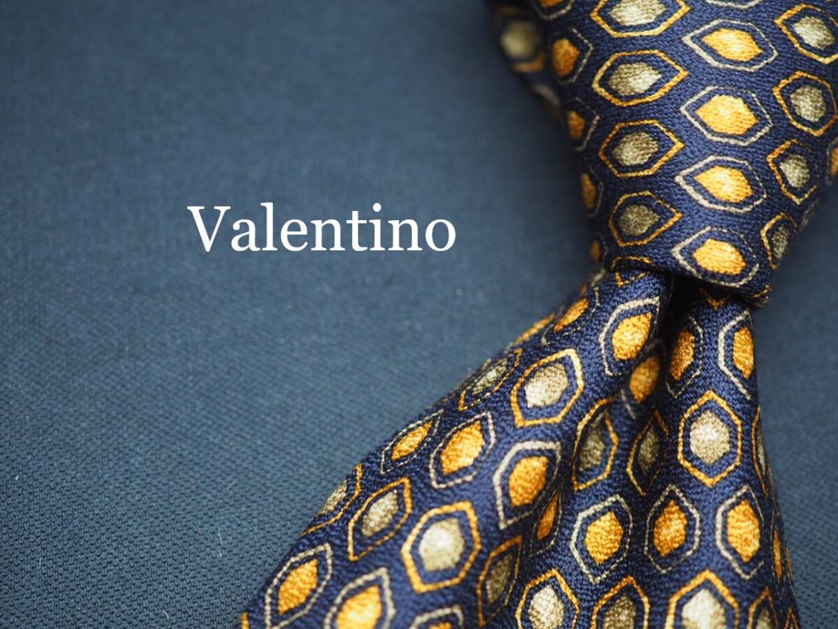 > 美品【VALENTINO ヴァレンティノ】 G1515 ネイビー系 SILK ブランド ネクタイ 古着 良品 転売 仕入