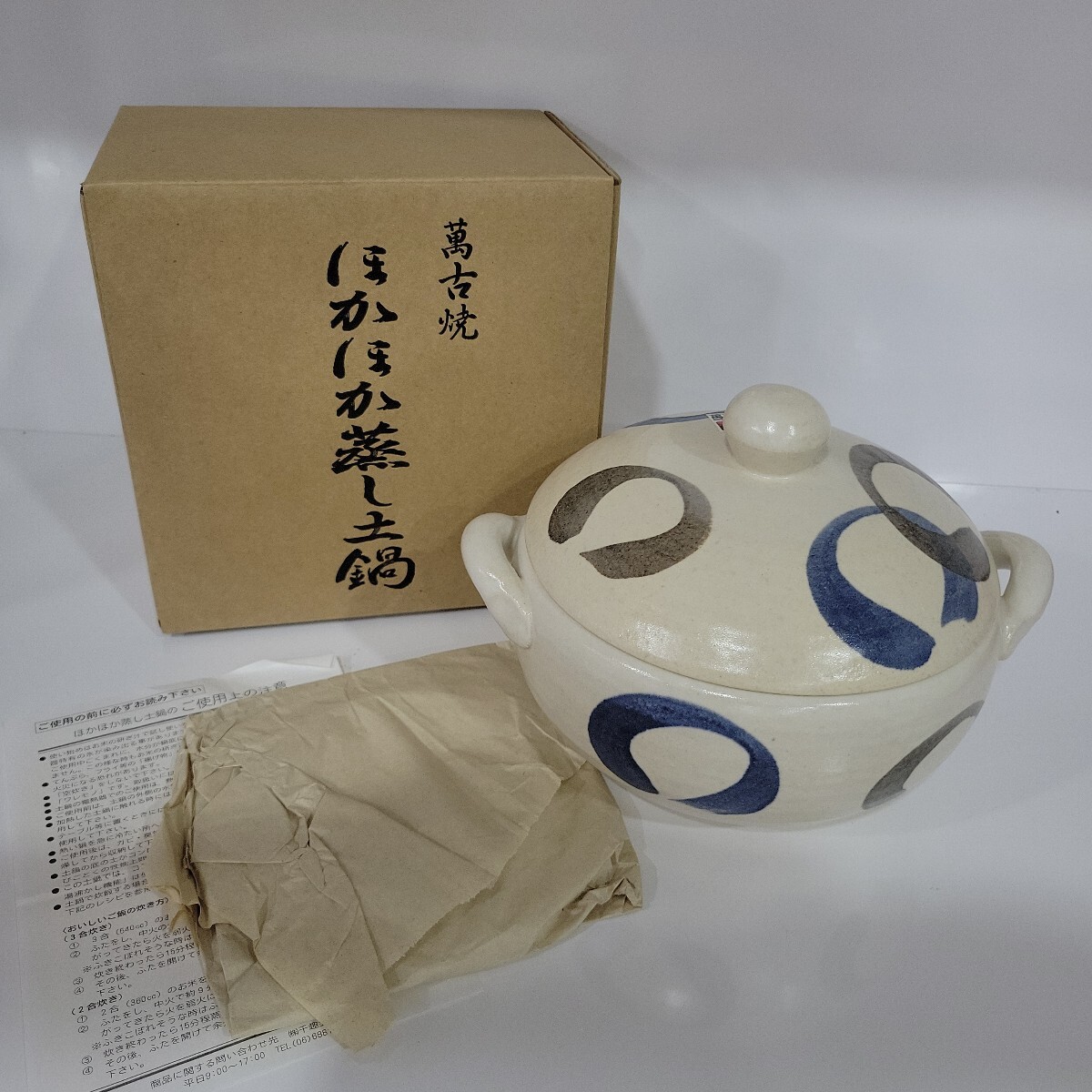 - №9449 未使用 保管品 萬古焼 ほかほか蒸し土鍋 両手鍋 直径約20㎝