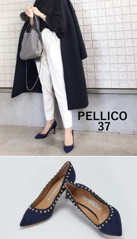 - 美品【PELLICO|ペリーコ】ANIMA スタッズパンプス スウェードパンプス 8 NAVY ネイビー 37