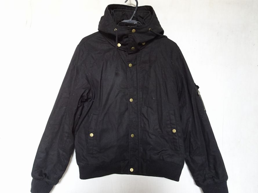- nine factory/中綿入ジャンパー/アウター/前ジップアップ/前立フラップ/フード取外可能/袖口・裾リブ素材/黒/ブラック/Lサイズ(11/11R7)