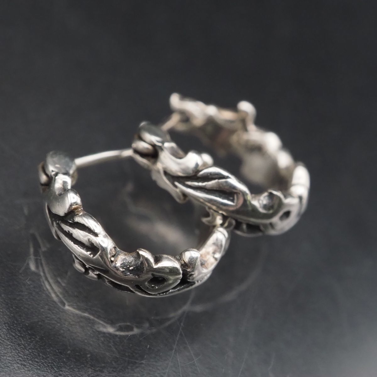 - H877 ヴィンテージ 925刻印 ピアス フープ デザイン シルバー