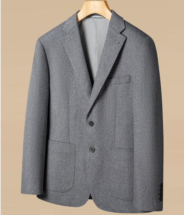 > 上質M 新品 ウールテンセル混 テーラードジャケット メンズ スーツジャケット 紳士 厚手 秋冬 ビジネス カジュアル ブレザー/グレー