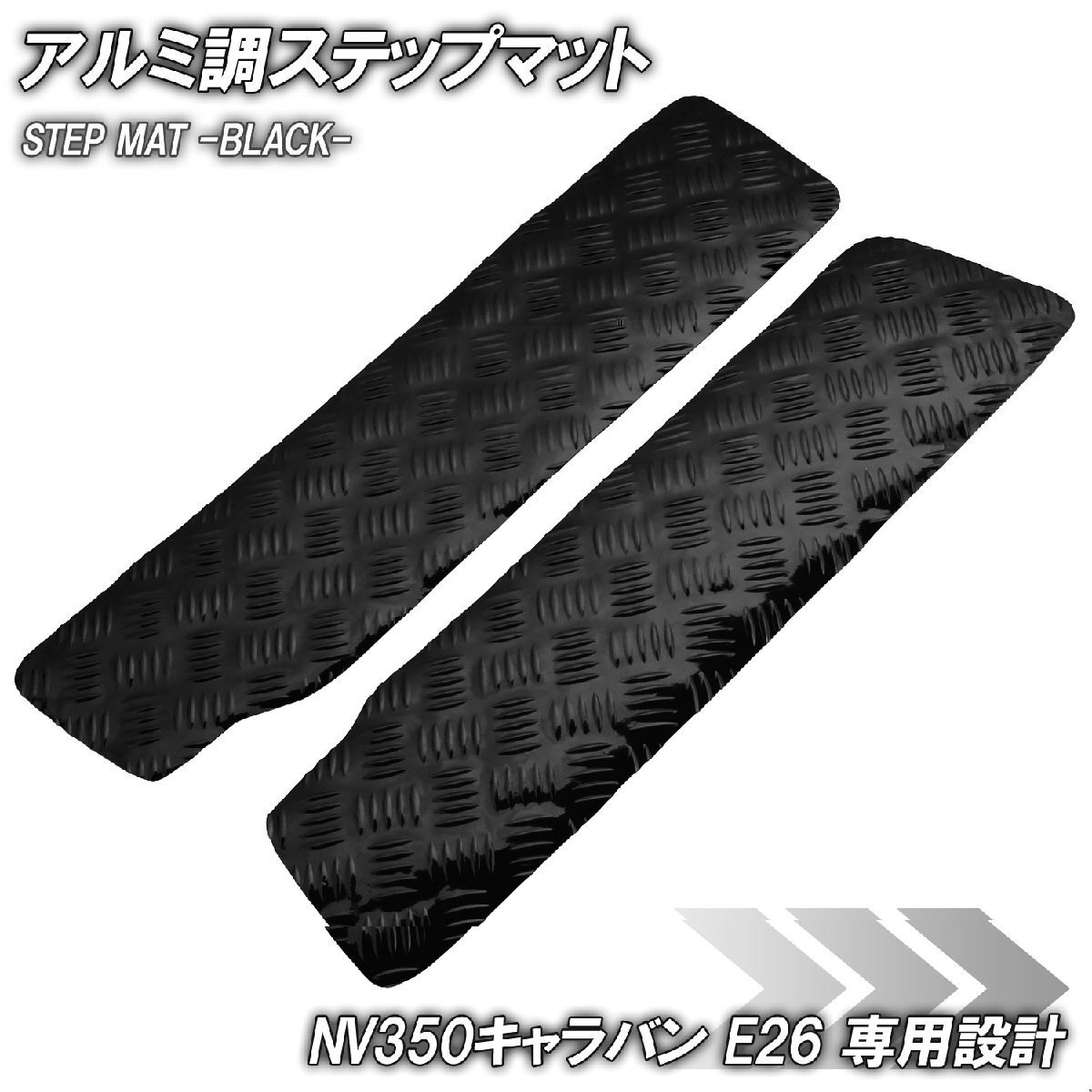 > アルミ調 ステップマット 日産 NV350 キャラバン E26 ブラック メッキ 車 ゴムマット ステップボード 交換 カスタム パーツ 内装 カー用品