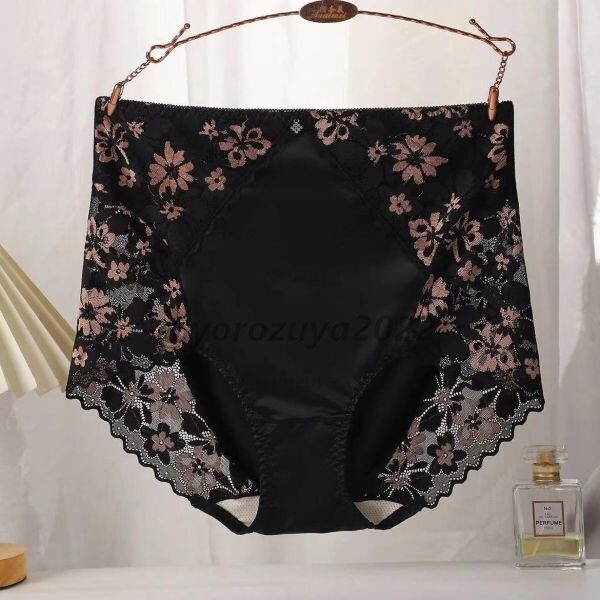> 121-133-9 フラワー レース 光沢 艶々 パンティー【ブラックXL程度(F)】レディース 下着 ショーツ 大きいサイズ パンツ ランジェリー.1