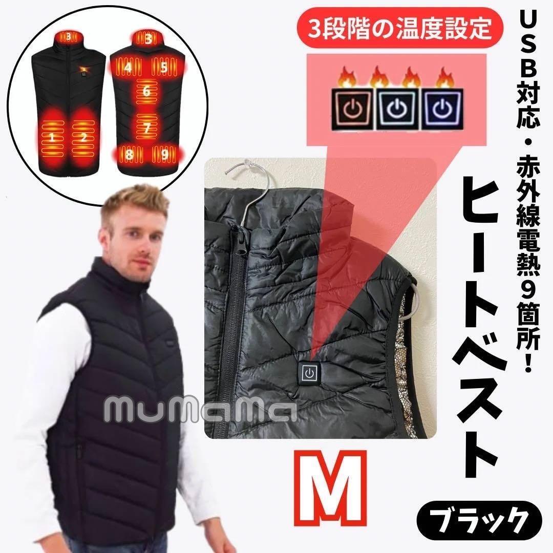 - ヒートベスト M 電熱ベスト メンズ USB接続式 赤外線電熱線 9ヶ所