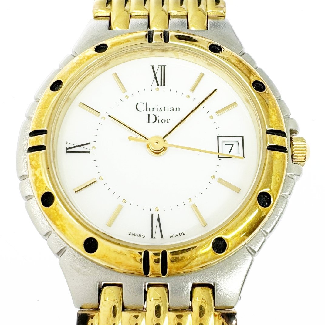 - 【1円スタート】Christian Dior クリスチャンディオール 3022 デイト GP×SS ホワイト文字盤 クオーツ レディース腕時計 512716