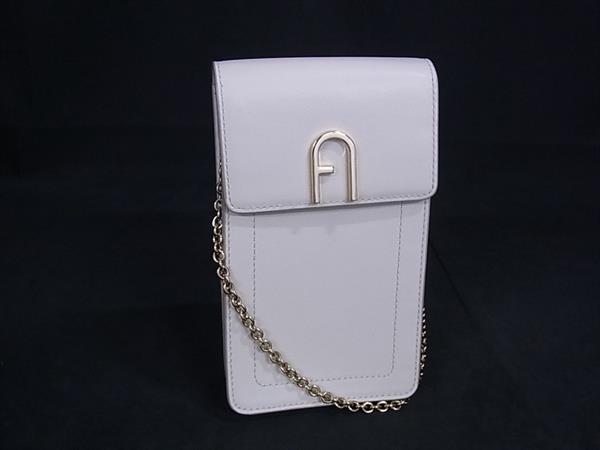 > 1円 ■極美品■ FURLA フルラ FLOW フロー レザー チェーン クロスボディ ショルダーバッグ 斜め掛け レディース アイボリー系 FU2805