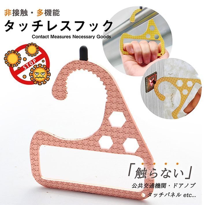 - 多機能 ドアオープナー フック アシスト つり革 触らない ボタン押し ウィルス対策 接触防止 ハンドルフック 7990243 ブロンズ 新品