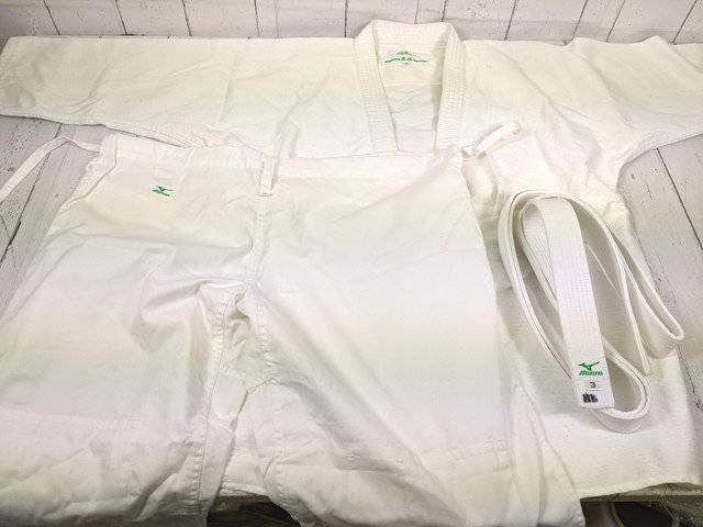 - 【10yt106】格闘技 柔道着上下セット+帯付き ミズノ MIZUNO 愛校(白 サイズ3)◆中学校 高校 体育授業 部活動に♪