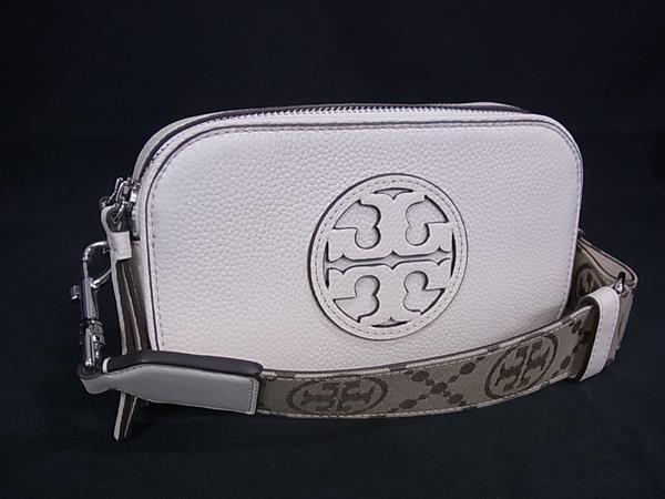 - 1円 ■美品■ TORY BURCH トリーバーチ ミラーミニ レザー ショルダーバッグ ポシェット クロスボディ レディース アイボリー系 FU6309