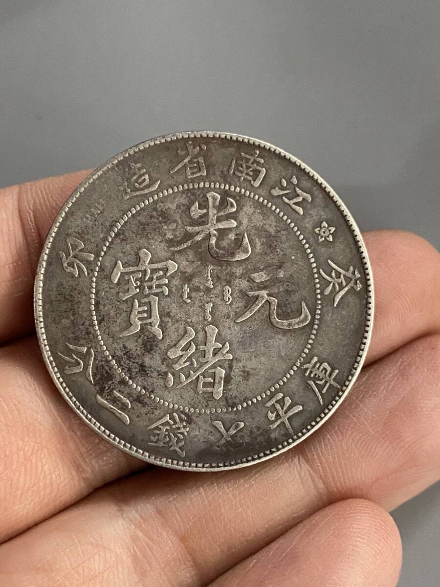 - 旧蔵 純銀彫 光緒元寶 江南省造 庫平七錢二分 銀元 銀貨 銀幣 中国古玩 骨董品 時代物 稀少唐物