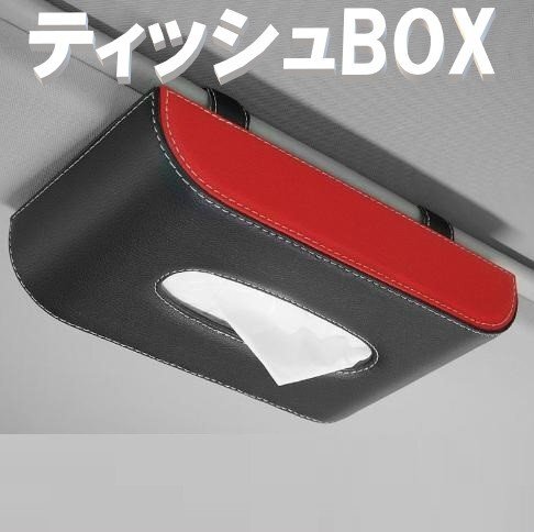 > ティッシュボックス クリップタイプで取付簡単 PUレザー ブラック×レッド サンバイザー ティッシュケース ティッシュカバー