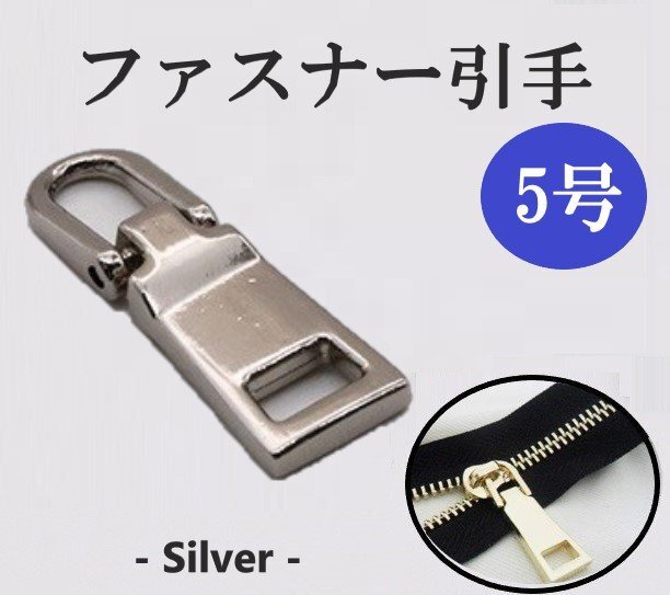 > ファスナー 5号 シルバー チャック 引手 引き手 持ち手 取っ手 ジッパー プルタブ ファスナートップ 修理 交換 取替 金属金具 財布