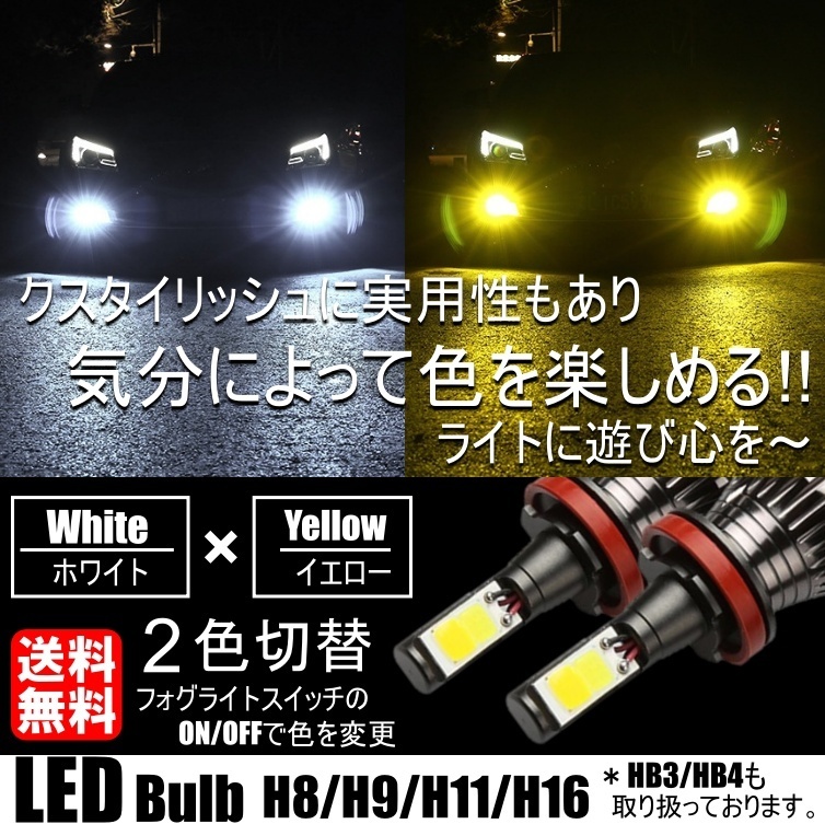 > H8/H9/H11/H16 LED フォグランプ 2色切替 カラーチェンジ 3000kイエロー/6000kホワイト LEDバルブ ツインカラー