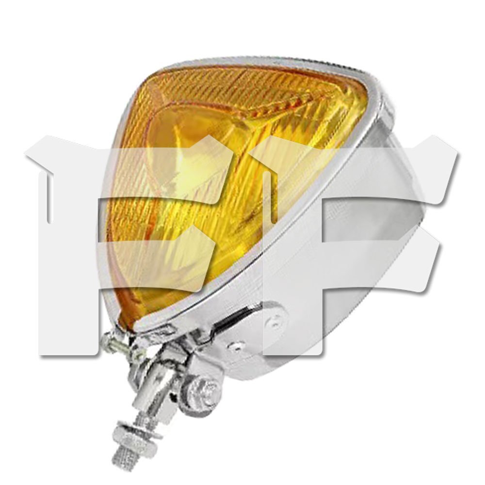 > 送料無料.. オートバイ レトロ ヘッドライト イエロー ホンダ カワサキ ヤマハ スズキ BMW ハーレー (クローム) FG-T 新品
