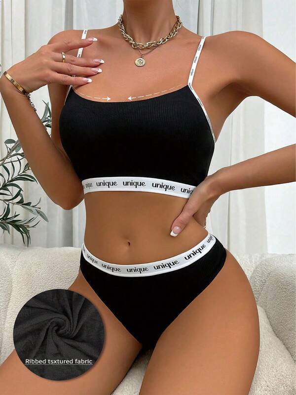 - インティメート ブラジャー ショーツ セット レターテープ付きブラ&ショーツセットランジェリー
