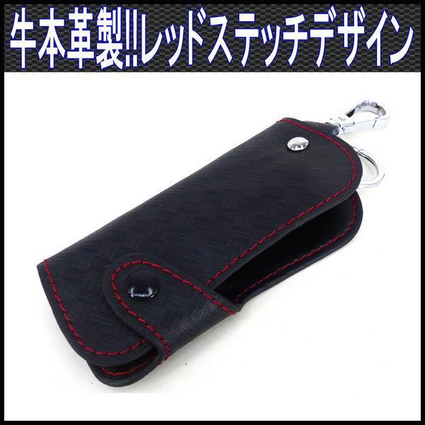 - 牛本革キーケース 黒×赤ステッチ 自動車用鍵 住居用鍵用等[クリックポスト発送時送料無料]