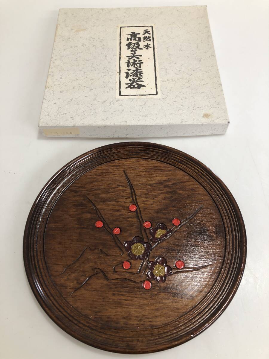 - HB5321 天然木 高級美術漆器 梅 丸盆 盆