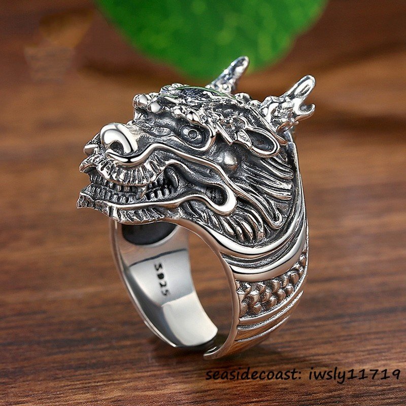 > 1円スタート ◆新品 リング 指輪 シルバー925 龍 手作り ドクロ アクセサリー メンズ レディース 男女兼用 フリーサイズ 調整可能