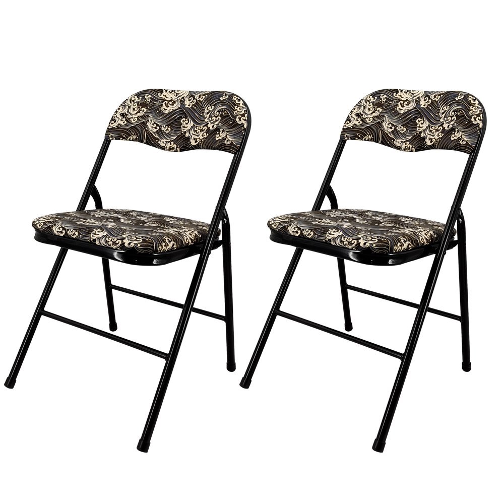 - 折畳み椅子 ジェネリック家具 2脚set 和モダンチェア オリジナル 和柄 伝統文様 可愛い シンプル 折畳み コンパクト パイプチェア茶波