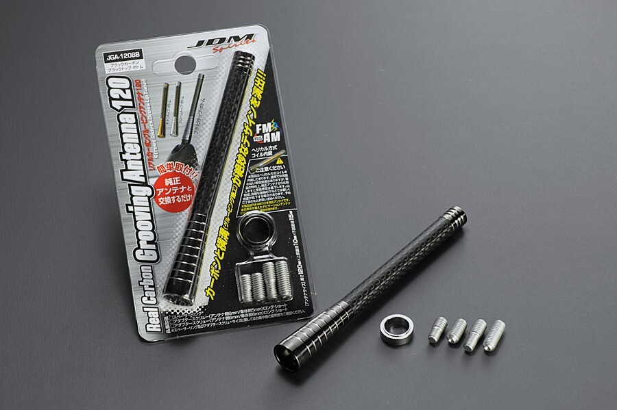 - 【ゆうパケット350】JDMリアルカーボングルービングアンテナ120 ブラックカーボン・ブラックトップ/ボトム ミツビシ用【JGA-120BB】