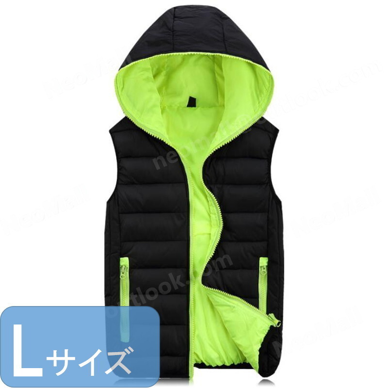 > シンプルな メンズ ダウンベスト 003 イエロー Lサイズ 中綿ダウン 中綿ベスト キルティング アウター 防寒 秋冬 暖かい
