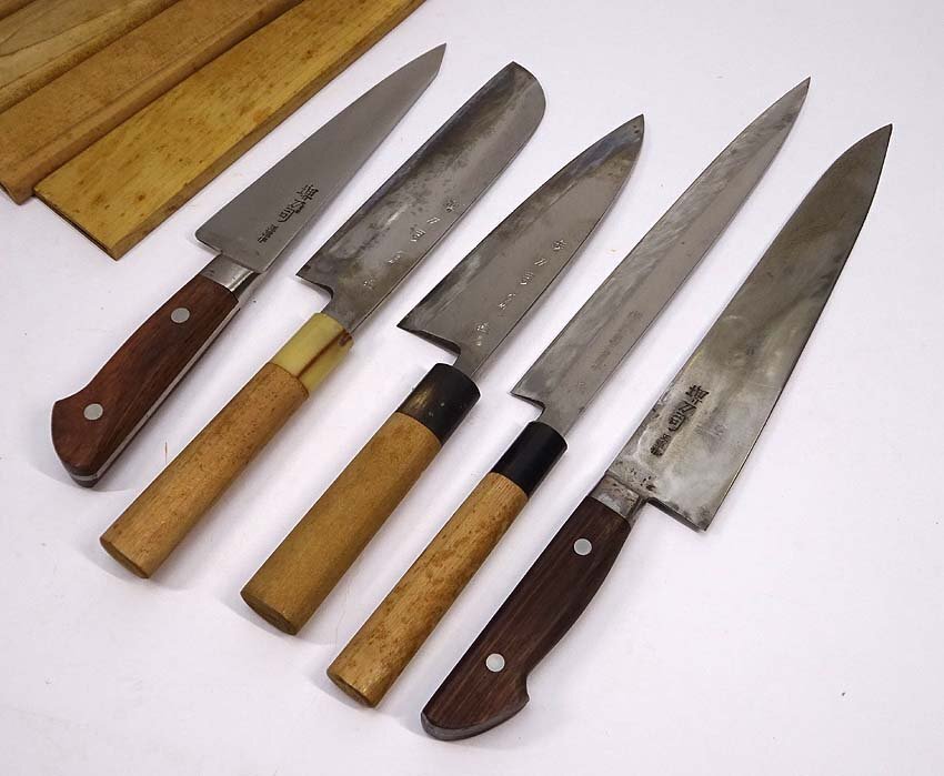 - 緑屋t■ 和包丁 5本 堺刀司 正重 岩国 出刃包丁 刺身包丁 菜切包丁など bnit/10-356/10-3#80