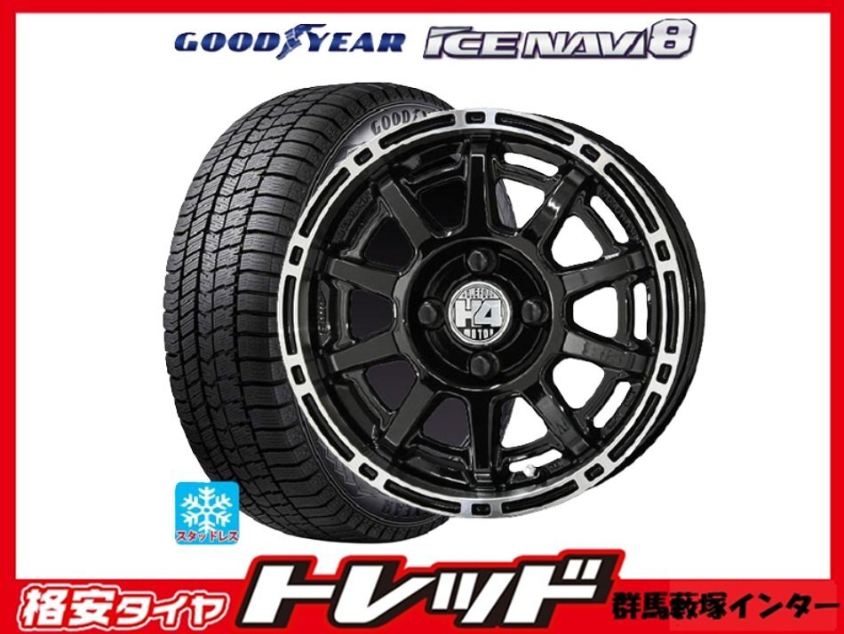 - 藪塚店 新品 冬タイヤセット H4モーター X1 14インチ 4.5j PCD100 4H +48 グッドイヤー アイスナビ8 155/65R14 2023-24年製