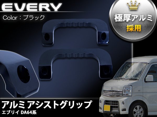 > [黒 ブラック] エブリイ DA64W DA64V アルミ製 アシストグリップ 運転席 助手席 左右セット 全年式 モデル対応 フロント