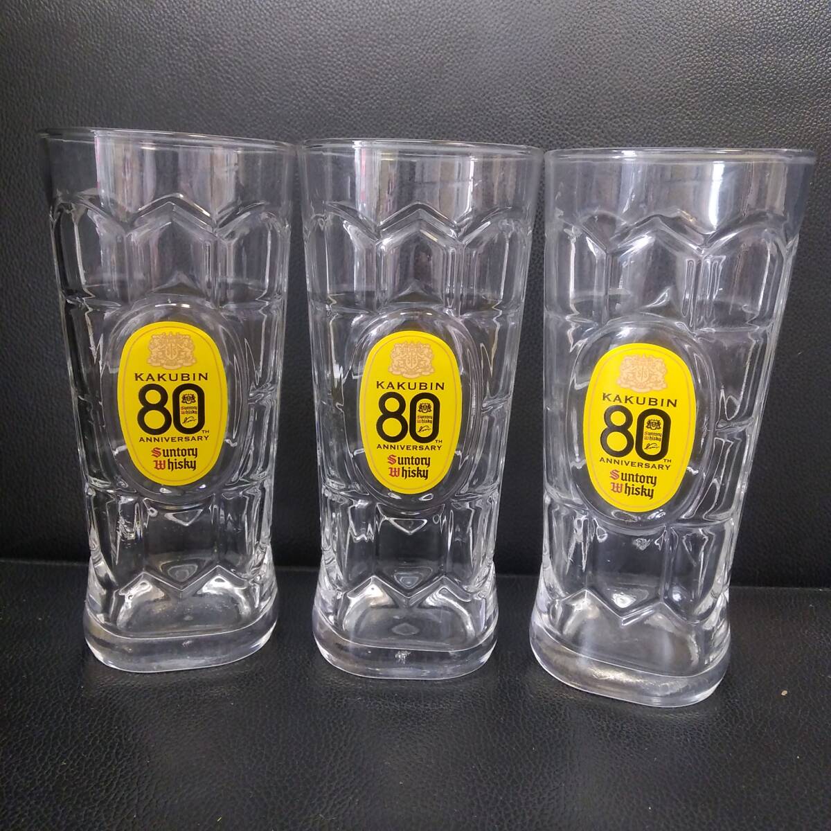 - 《食器》酒器「サントリー 角瓶80周年記念タンブラー 3個セット」 高さ:約15.5cm・口直径:約7cm 角ハイボールグラス コップ 3点