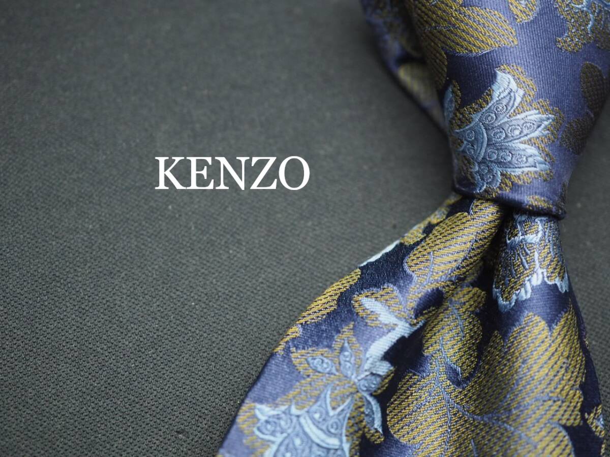 - 美品【KENZO ケンゾー】 G1791 ITALY ネイビー系 花 SILK ブランド ネクタイ 古着 良品 転売 仕入