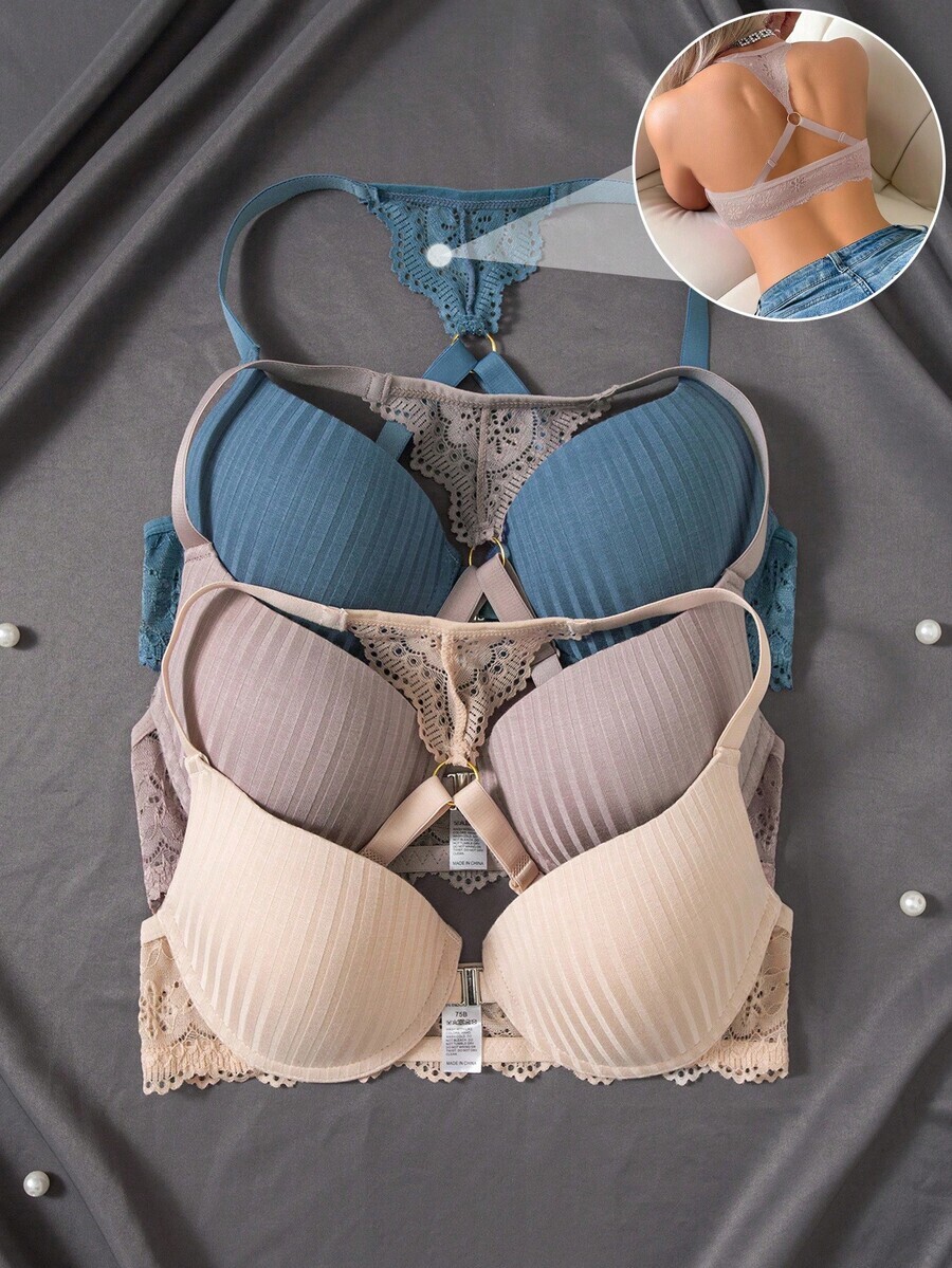 - インティメート ブラジャー 3点セット フロントホック レース パッチワーク ブラセット セクシー