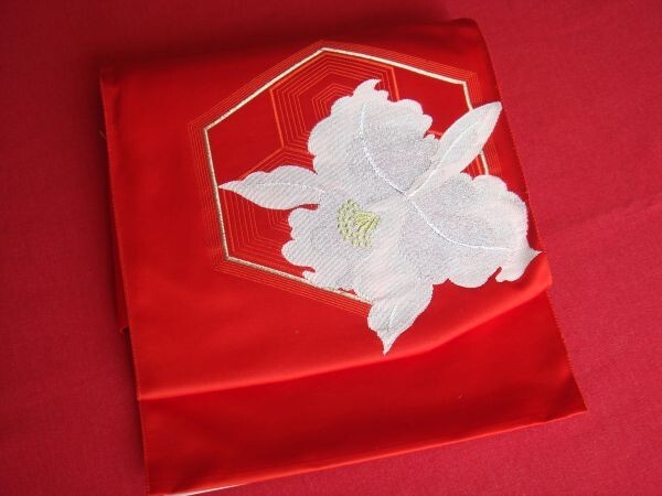 > ★ざ*きもの★ お買い得品! 冬八寸帯 仕立て上がり 太鼓柄 赤地