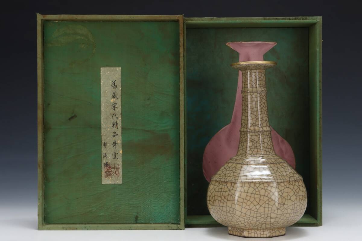 - 旧蔵 宋代 哥窯 米黄釉 八角瓶 古擺件 古置物 中国古玩 骨董品 時代物 稀少唐物
