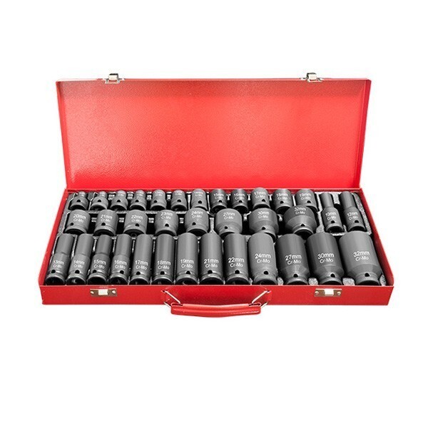 - インパクトソケットセット アダプター 12.7 1/2 サイズ ディープ ロング ショート 種類 四角 インパクトレンチ エアー 電動工具 35個