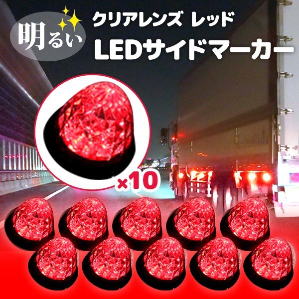 - 24V LED マーカーランプ 高輝度 16LED サイドマーカー レッド 10個 赤 クリスタルカット 長寿命 省エネ 車 トラック カスタム 送料無料