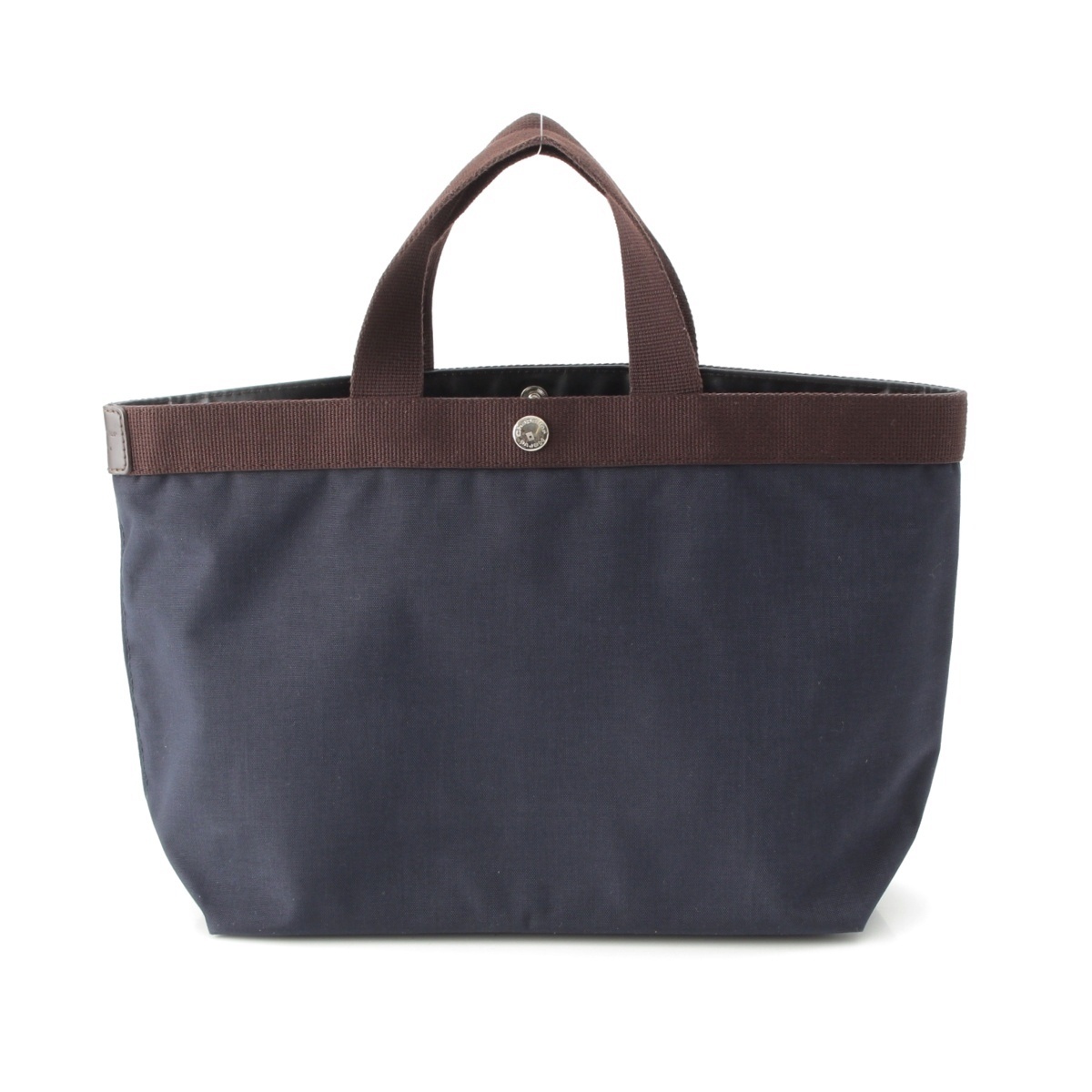 - エルベ・シャプリエ スクエア 704C キャンバス ハンドバッグ ネイビー ブラウン ミディアム【中古】