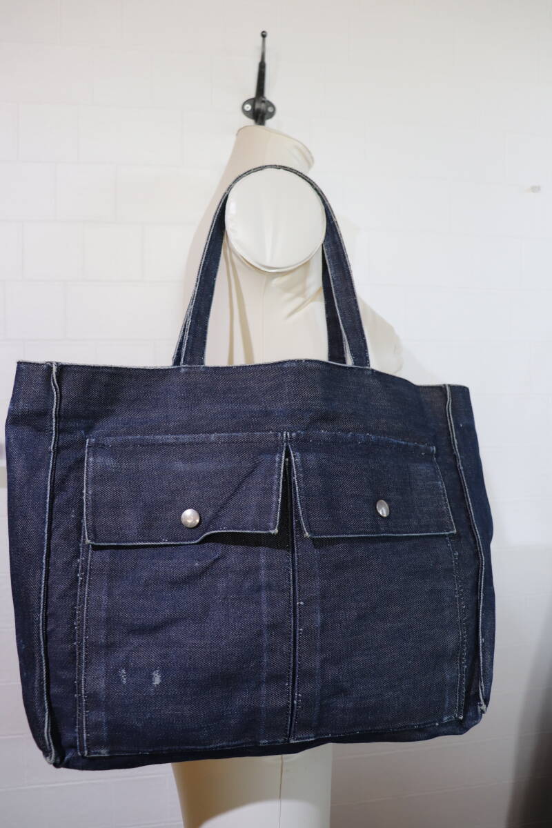 > 即決 2000年代初頭 A.P.C. アーペーセー フランス製 フラップポケット アーミー ミリタリーバッグ デニムトートバッグ ユニセックス