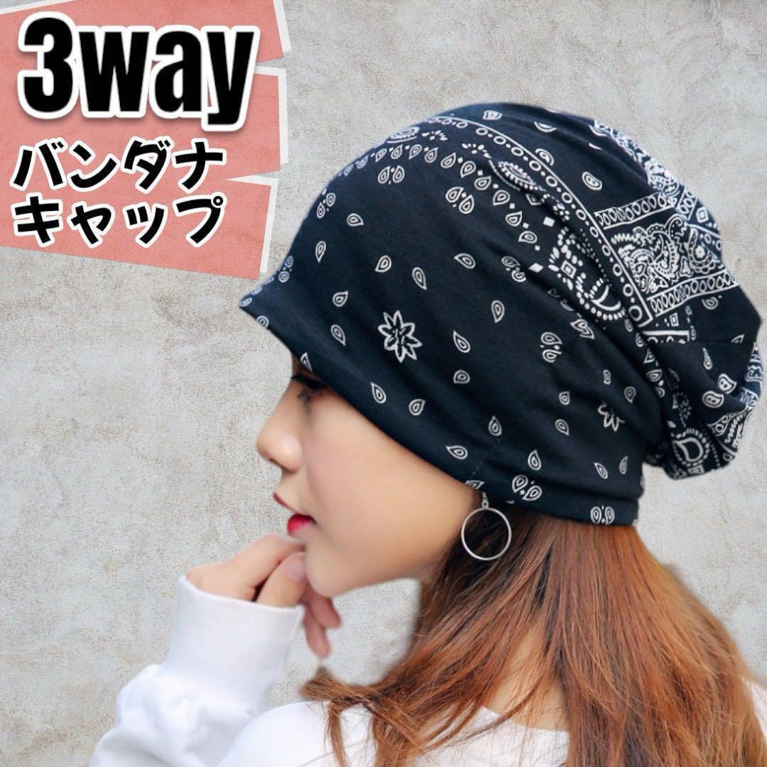 - バンダナキャップ ペイズリー柄 バンダナ ターバン ネックウォーマー ブラック 男女兼用 ペイズリー バンダナ ターバン ネックウォーマー