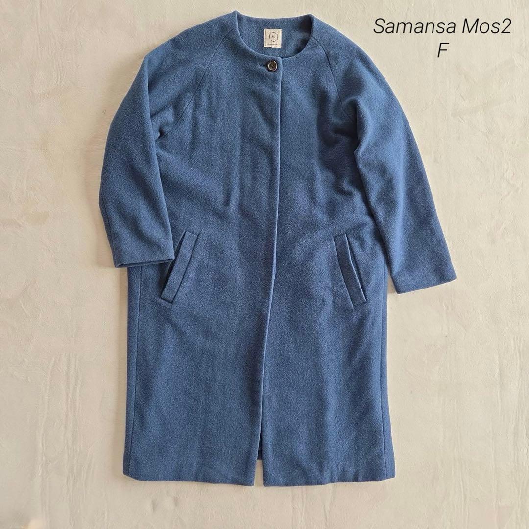 - サマンサモスモス SM2 ノーカラーコート F ダークブルー ウール
