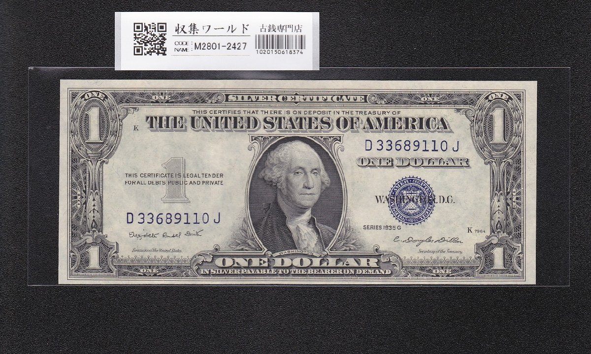 米国 1ドル紙幣/ワシントン 1935年銘 D記号 ロットNo.D33689110J 完未品 収集ワールド
