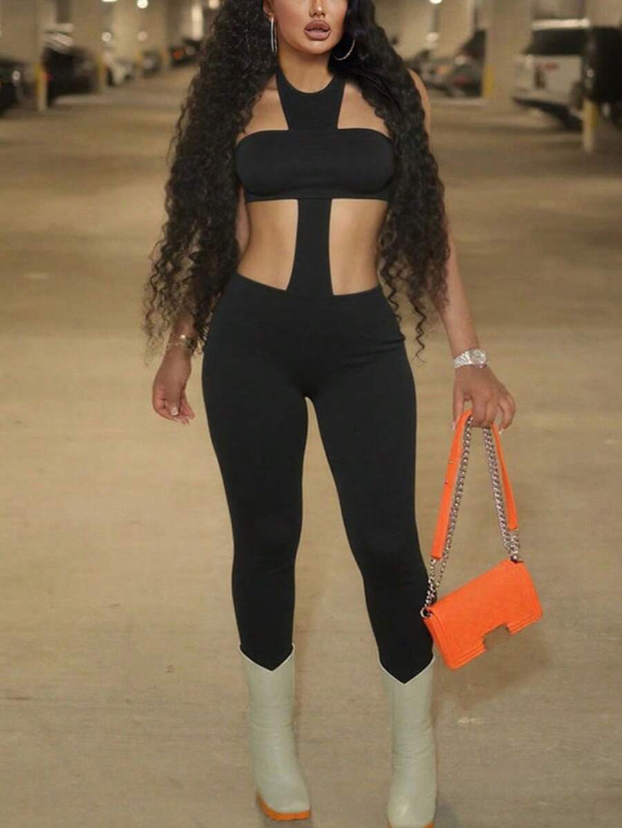 - ボディスーツ ファッショナブルなカットアウト バックレス セクシー ホルター スリム ジャンプスーツ