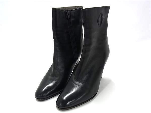 - 1円 ■美品■ ChristianDior ディオール レザー ヒール ショートブーツ 表記サイズ:4(約21cm) 靴 シューズ レディース ブラック系 FP3966