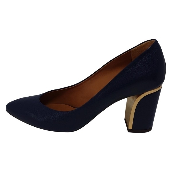 > クロエ Chloe パンプス 37 1/2 - レザー ダークネイビー×ゴールド レディース 靴