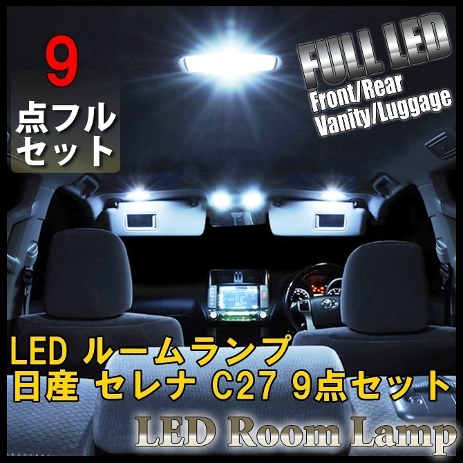 - 日産 C27 セレナ LED ルームランプ 9点 セット 車内灯 室内灯 S-HYBRID B S X G ハイウェイスター 内装 車 白 ホワイト 送料無料