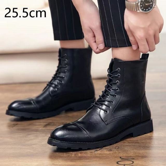 - チェルシーブーツ ビジネスブーツ 本革 メンズ ブーツ フォーマル カジュアル ハイカット 紐靴 防水 革靴 ブラック 25.5CM