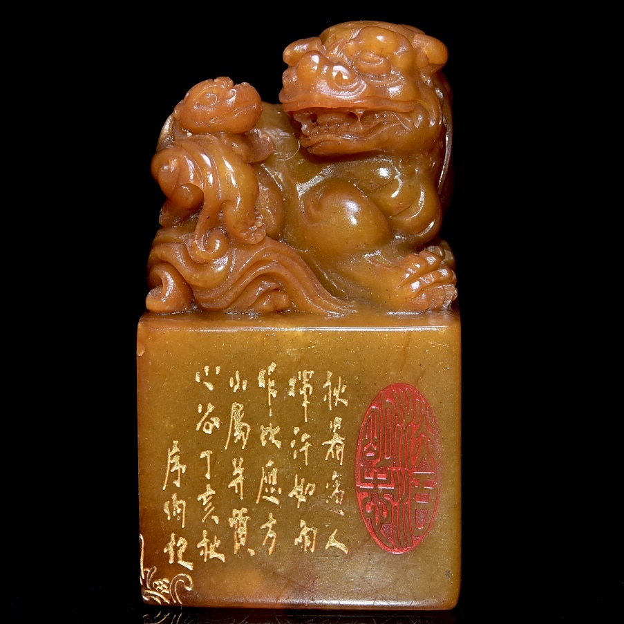 - 旧蔵 寿山石彫 田黄石 印章 古擺件 古置物 中国古玩 骨董品 時代物 稀少唐物
