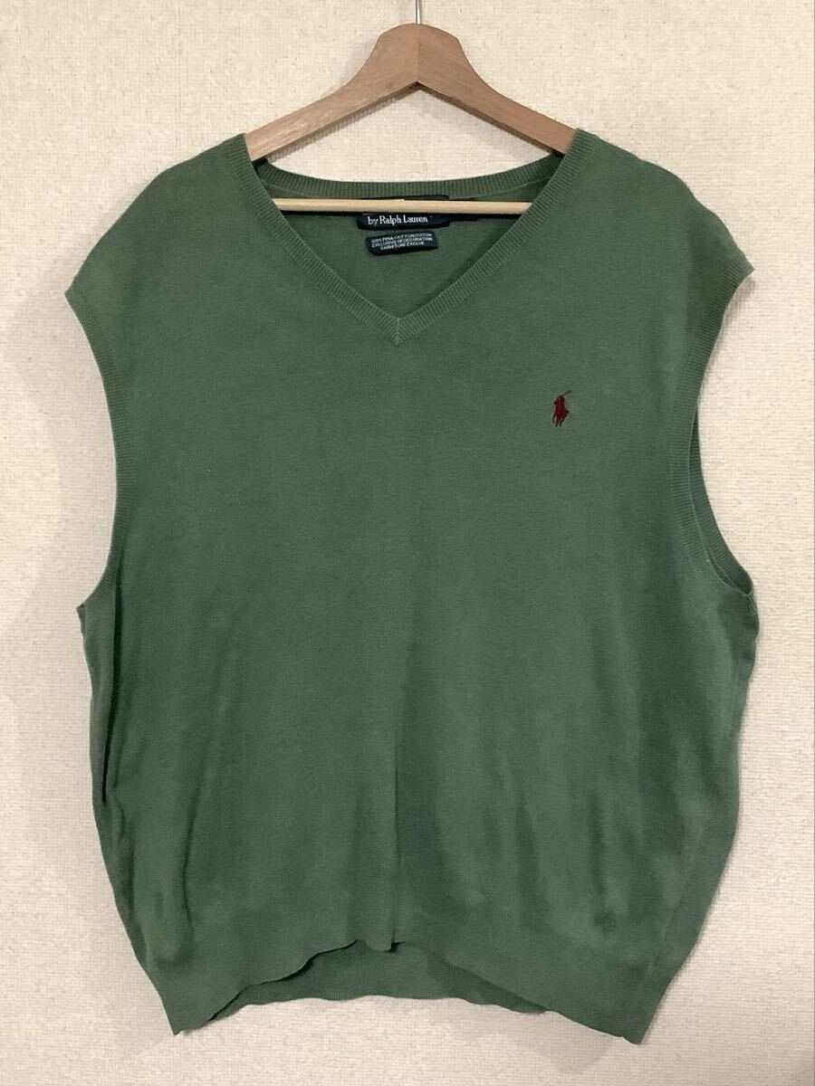 - POLO RALPH LAUREN ラルフローレン Vネック コットンニットベスト グリーン セレクト ビンテージ カジュアル メンズ PIMA COTTON