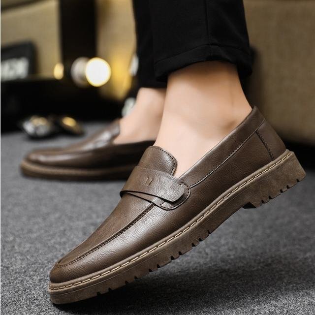 - ローファー スリッポン メンズ メンズシューズ 革靴 PU革 幅広 就活 通勤 紳士靴 歩きやすい ブラウン 26.5cm