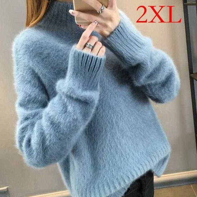 - ニットセーター レディース 秋冬 40代 長袖ニットトップス ボトルネックセーター モコモコ ゆったりプルオーバー 無地 ブルー2xl